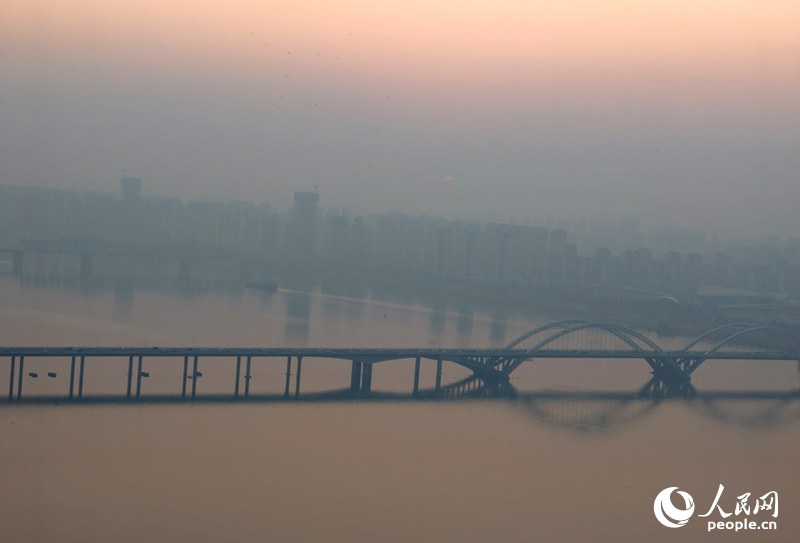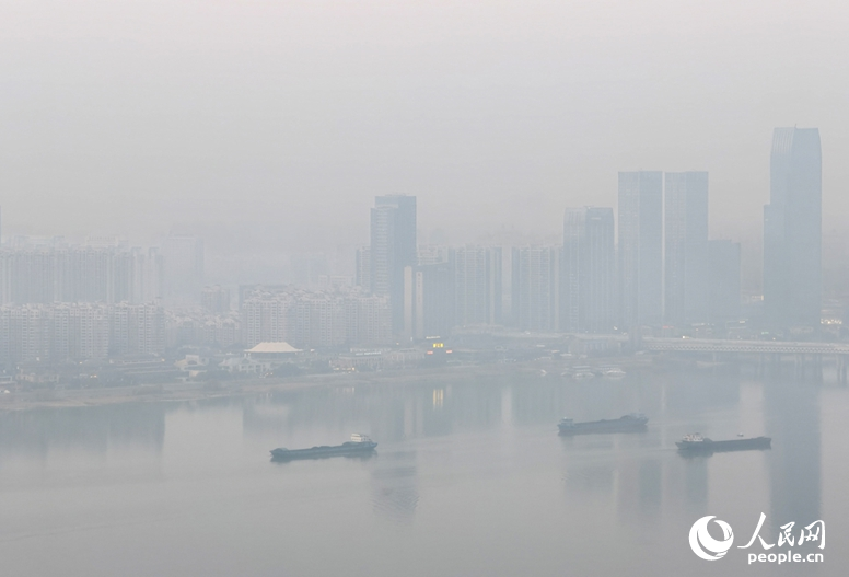 污染物随弱冷空气南下,南昌赣江两岸雾蒙蒙。人民网记者 时雨摄
