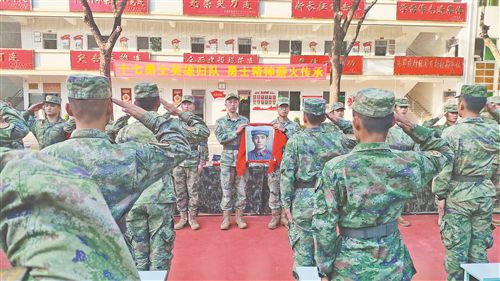 “爷爷终于‘回到’了当年和战友并肩战斗的连队,我为他感到高兴!”当天,面对“大渡河连”全连官兵,熊尚林烈士的侄孙熊鹤鸣手捧画像激动地说。