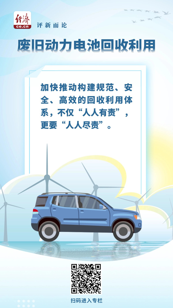 据相关机构测算,2030年国内废旧动力电池产生量将超过100万吨,加快推动构建规范、安全、高效的回收利用体系时不我待,不仅“人人有责”,更要“人人尽责”。这是一片广阔的产业蓝海,机遇和挑战并存。期待以此次《办法》“立规矩”为契机,进一步整合政策、技术、市场等多方资源,压实各方责任,推动废旧动力电池回收利用产业不断壮大,为我国新能源汽车产业可持续发展与“双碳”目标实现提供有力支撑。(中国经济网评论员 邓浩)