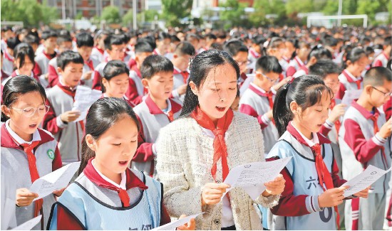 4月20日,在济南市历城区万象新天学校,第十届“相约论语文化中国”万人齐诵《论语》山东主会场活动举行。(卢鹏 马广泽报道)