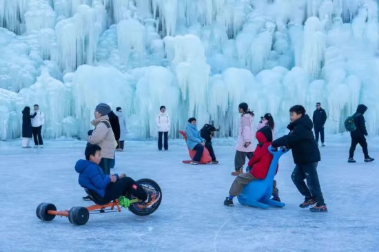 淄博潭溪山旅游度假区连续十一年打造崖壁冰瀑景观,今年景区全新打造两处戏雪乐园,不仅有雪圈滑道、雪地转转等老少皆宜的雪上项目,还特别设置了围炉煮茶、雪地火锅区域,让游客既能感受冰雪的纯粹快乐,也能解锁多样游玩体验。