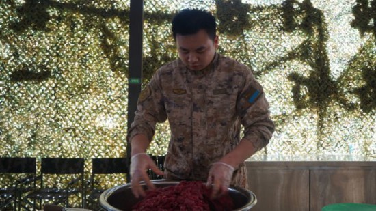 谢钢口中“心里踏实”的日子,基本上是炊事车上做饭、帐篷里睡觉的“风餐露宿”时光。近年来,随着空军部队演习演训和实战实训任务越来越密集,谢钢也跟随部队“转战”祖国大江南北——有时,茫茫戈壁;有时,雪域高原;有时,沿海一线。