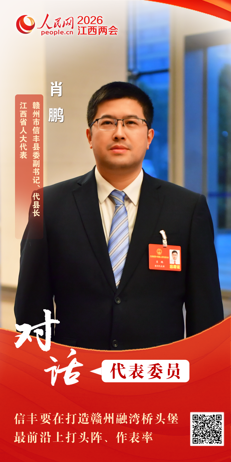 2026年是“十五五”规划开局之年,也是为基本实现社会主义现代化夯实基础、全面发力的关键一年。立足赣鄱大地,如何锚定高质量发展首要任务、因地制宜推动发展走深走实,为“十五五”开好局起好步,2026年江西省两会期间,江西省人大代表、赣州市信丰县委副书记、代县长肖鹏接受了人民网专访。