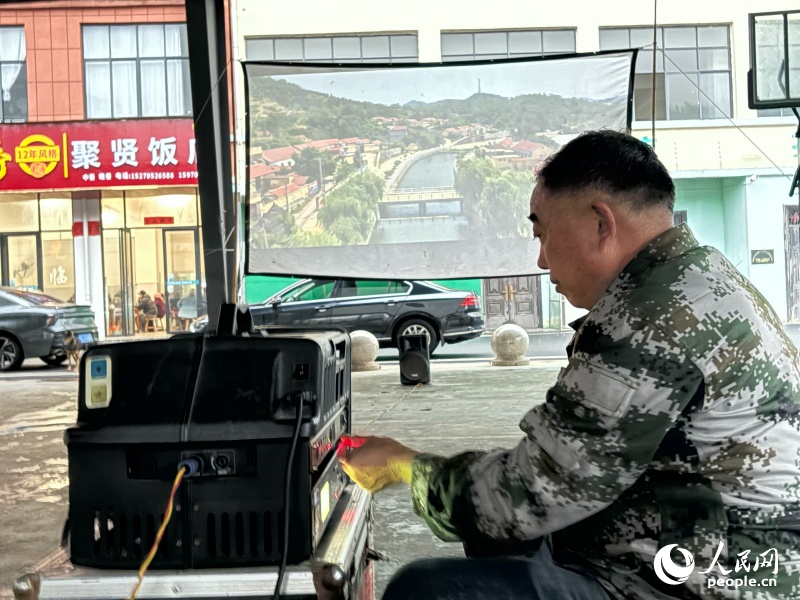 胡克丰为电影放映做准备工作。人民网记者 邹玢琦摄
