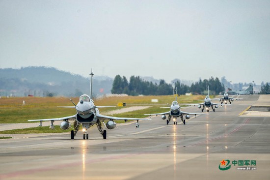 空军航空兵某部组织训练。图为机群滑出。解放军报特约记者 王国云 摄