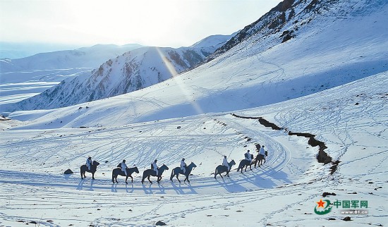 巡逻路上,军马也是亲密的“战友”。一次巡逻突遇暴风雪,官兵们在风雪中渐渐迷失方向。这时,军马饲养员李波将军马“黑风”牵到队伍前方。都说“老马识途”,只见“黑风”低着头,顶着风雪,朝一个方向坚定地走去。