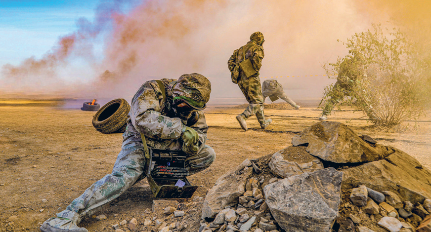 近日,陆军某团开展专业课目强化训练。图为官兵进行毒剂侦检。曾存军摄