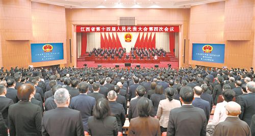 1月31日,省十四届人大四次会议圆满完成各项议程,在南昌胜利闭幕。记者 海 波摄