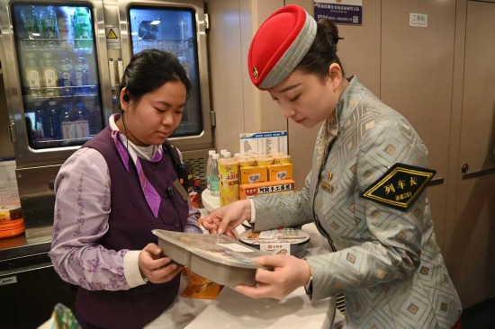 在返乡高峰的乘降组织中,乘务员守好车门做好引导、乘服员重点帮扶老弱病残孕旅客、餐服员及时疏导通道客流,各岗位无缝衔接。每次抵达大站前,班组提前做好客流预警,做到“车未停、人先备,门一开、快疏导”,最大限度压缩停站时间,保障列车准点运行。邵瑞利说,正是这份协同联动,让班组在春运最繁忙的时段依然忙而不乱、快而有序。