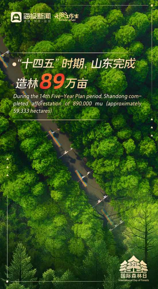 林木葱茏,生生不息;山河锦绣,久久为功。在国际森林日的特殊时刻,我们更加懂得,一片林、一座城、一条河,皆是生态文明的生动注脚。山东以匠心植绿、以恒心护绿、以初心守绿,让青山永驻、林海常青。未来,我们将继续怀揣对自然的敬畏、对生态的珍视,一茬接着一茬干、一棒接着一棒跑,让绿色成为齐鲁大地最动人的底色,让森林滋养万家灯火,让生态之美绵延不息、泽被长远。(徐明业)