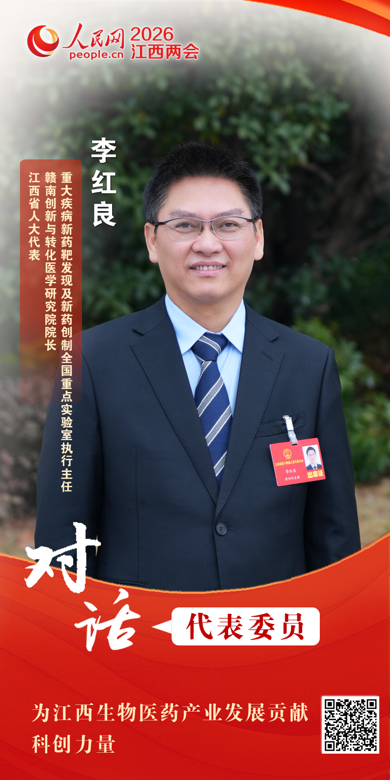 李红良:作为来自生物医药科创领域的省人大代表,此次上会我带来的核心建议是以人工智能赋能生物医药产业高质量发展,打造江西特色的医工交叉创新生态。紧扣江西省“人工智能+”行动方案部署,聚焦生物医药这一江西重点培育的新兴产业,建议省里加大对人工智能与生物医药融合创新的顶层设计和政策支持,统筹省内国家级创新平台、高校、龙头企业的资源力量,布局建设省级生物医药人工智能创新中心,主攻AI药物发现、智能靶点筛选、临床数据分析、智慧医药研发等核心方向。同时,建议设立人工智能先锋工程专项项目,完善人工智能生物医药人才引育机制,推动跨领域人才联合培养,还希望省里出台配套政策,鼓励医疗机构、科研院所、科技企业开放优质数据资源,构建安全合规的生物医药大数据体系,让人工智能成为江西生物医药产业创新升级的核心驱动力,助力全省现代化产业体系构建。