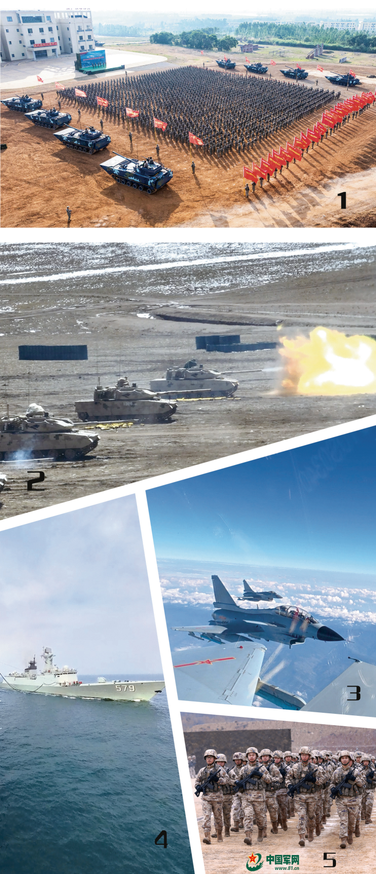 图1整装待发 图2实弹射击 图3编队飞行 图4战舰远航 图5奔赴战位