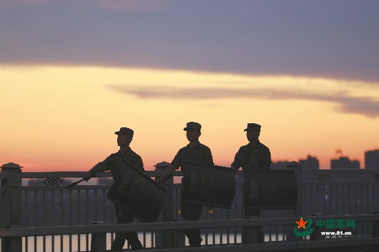 武警江西总队九江支队执勤一大队哨兵完成执勤任务后下哨返营。方志超 摄