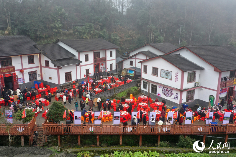 神山村第十届“村宴”,村民和游客聚在一起品尝“年味”。人民网记者 时雨摄
