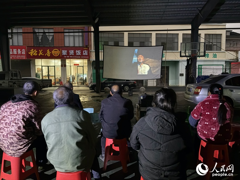 居民们聚在一起观看电影。人民网记者 邹玢琦摄