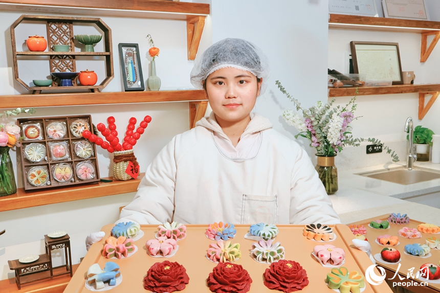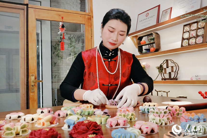 徐千宜正在捏制花酥的造型。人民网记者 邱烨摄