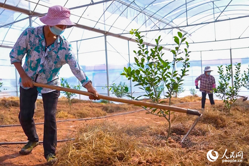 农户们正在进行田间管理。人民网记者 秦海峰摄