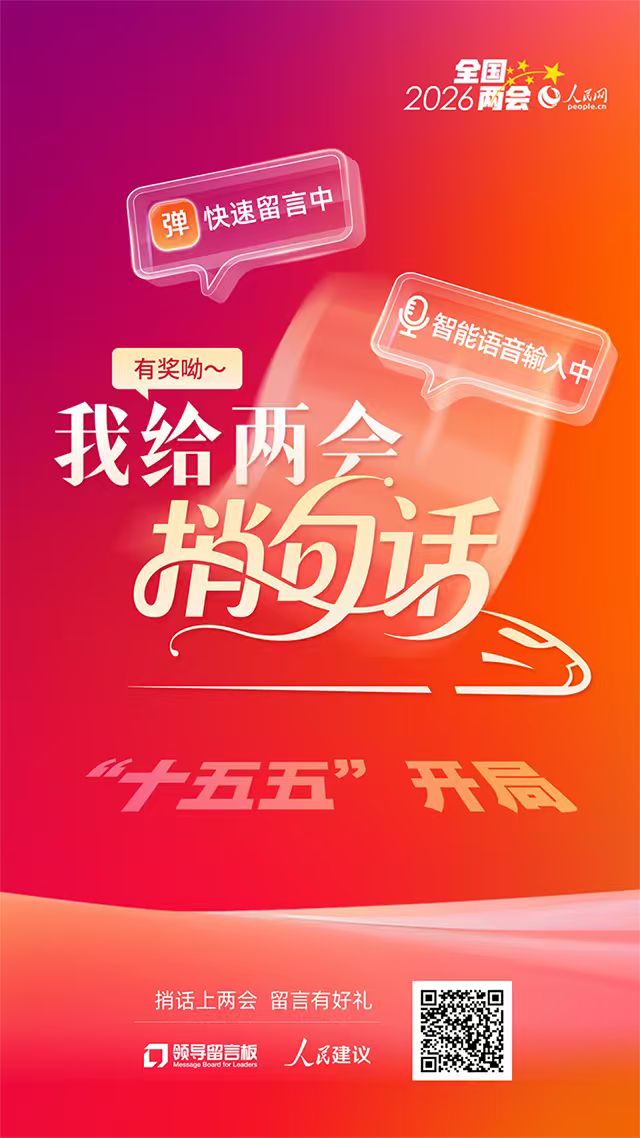 人民网2026年“我给两会捎句话”建言征集活动正在进行,各界群众可通过活动专题、人民网“领导留言板”小程序、“人民网+”客户端等渠道参与建言。