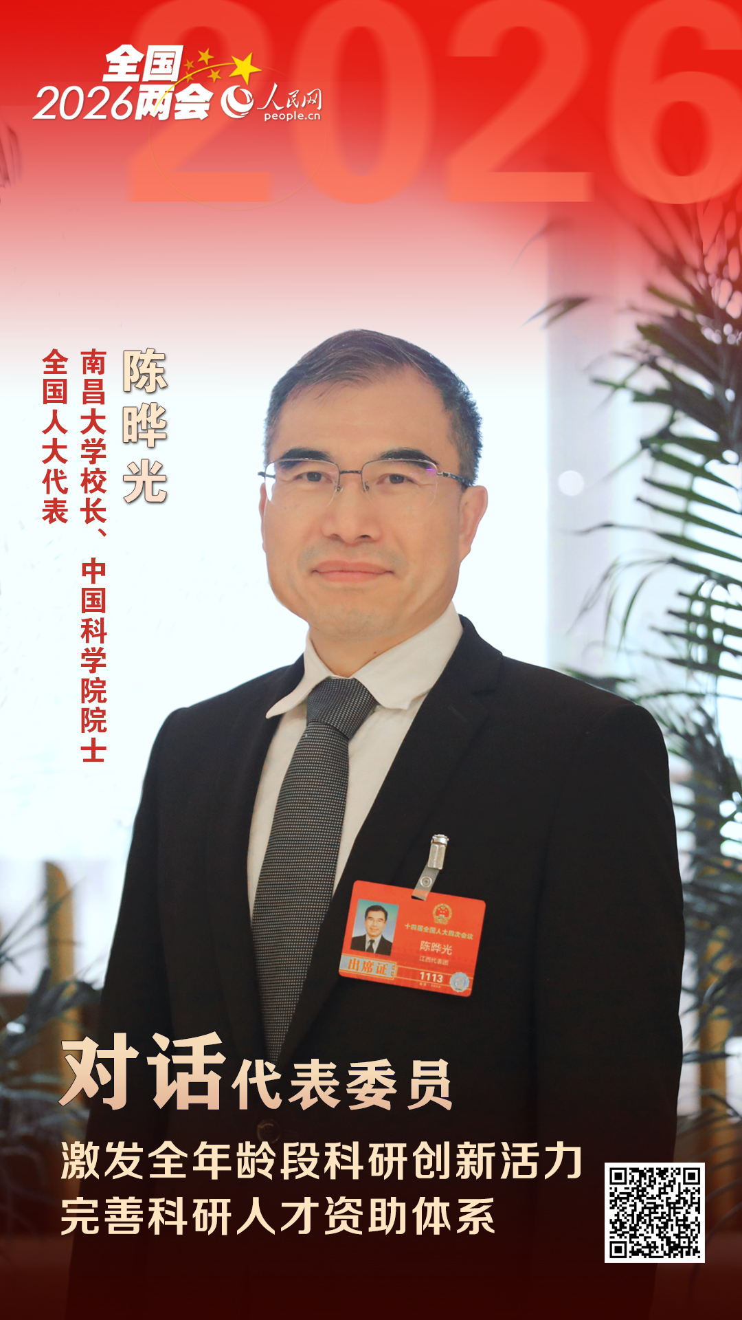 “在支持青年人才方面成效显著的同时,存在中老年科研人员的创新活力与科研价值未能充分释放、优质科研人才资源流失的现象。”2026年全国两会期间,全国人大代表,南昌大学校长、中国科学院院士陈晔光接受记者采访时表示,建议优化科研项目申报政策,激发全年龄段创新活力。