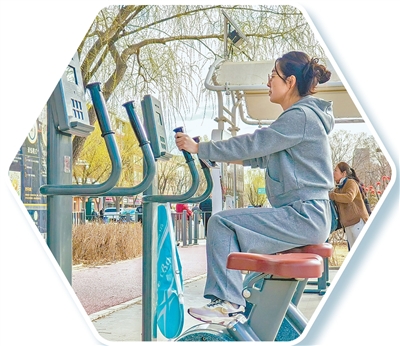 内蒙古呼和浩特市万和体育公园内,市民在使用智慧健身器械锻炼身体。 |