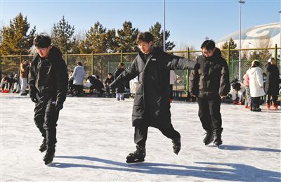 12月15日,内蒙古医科大学的学生在校内冰场滑冰。为丰富学生冬季体育生活,内蒙古医科大学特色体育冰课近日开课。近年来,该校始终以“健康第一”为教育理念,构建“课程筑基、赛事赋能、文化育人”三位一体体育工作体系,将体育教育深度融入医学人才培养全过程。记者 王磊摄