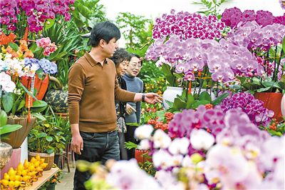 红的热烈、粉的温柔、黄的明亮……新春的花卉市场生机盎然、热闹喜庆。人们满怀对马年的美好期盼与祝福,选购心仪的花,装点温馨的家。(记者 王晓博 刘燕杰 摄)