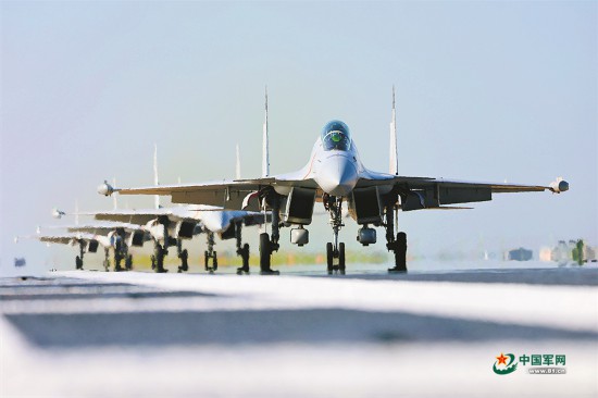 海军航空大学组织舰载战斗机多机编队训练。姜 涛摄