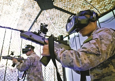 近日,第81集团军某旅官兵体验VR射击。 本报记者 穆瑞林摄